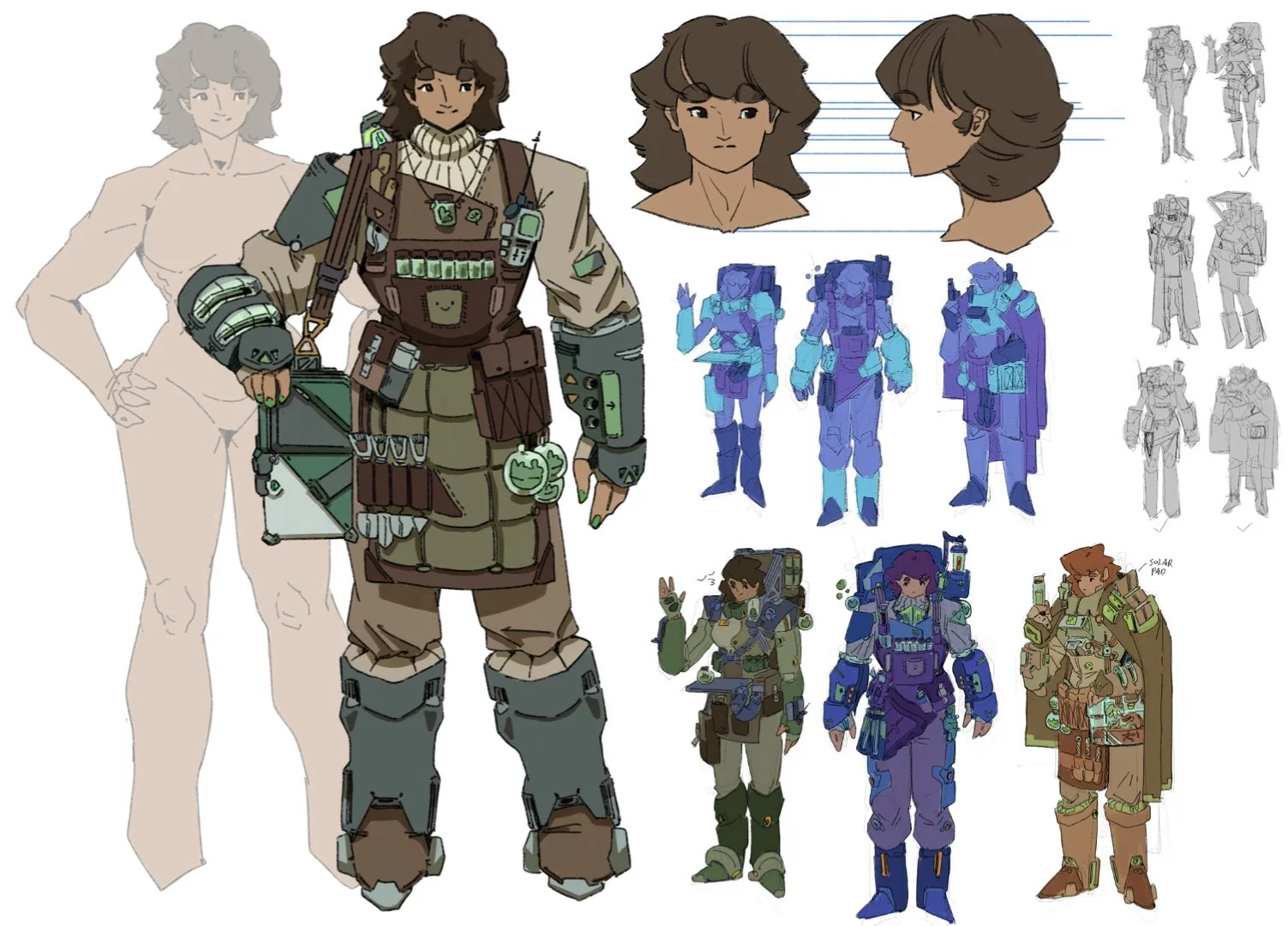 This project is a character design experiment set in a futuristic world where humanity explores the galaxy for discovery. In this universe, diplomatic ties with alien civilizations have been established, enabling humans to integrate advanced technology and collaborate with extraterrestrial allies. The designs include an advanced unit of four members and a droid, each tailored to navigate alien terrains, confront unknown creatures, and adapt to diverse challenges. From initial sketches to final renderings, the process involved developing character appearances, three-view turnarounds, and concept designs for gear and vehicles.