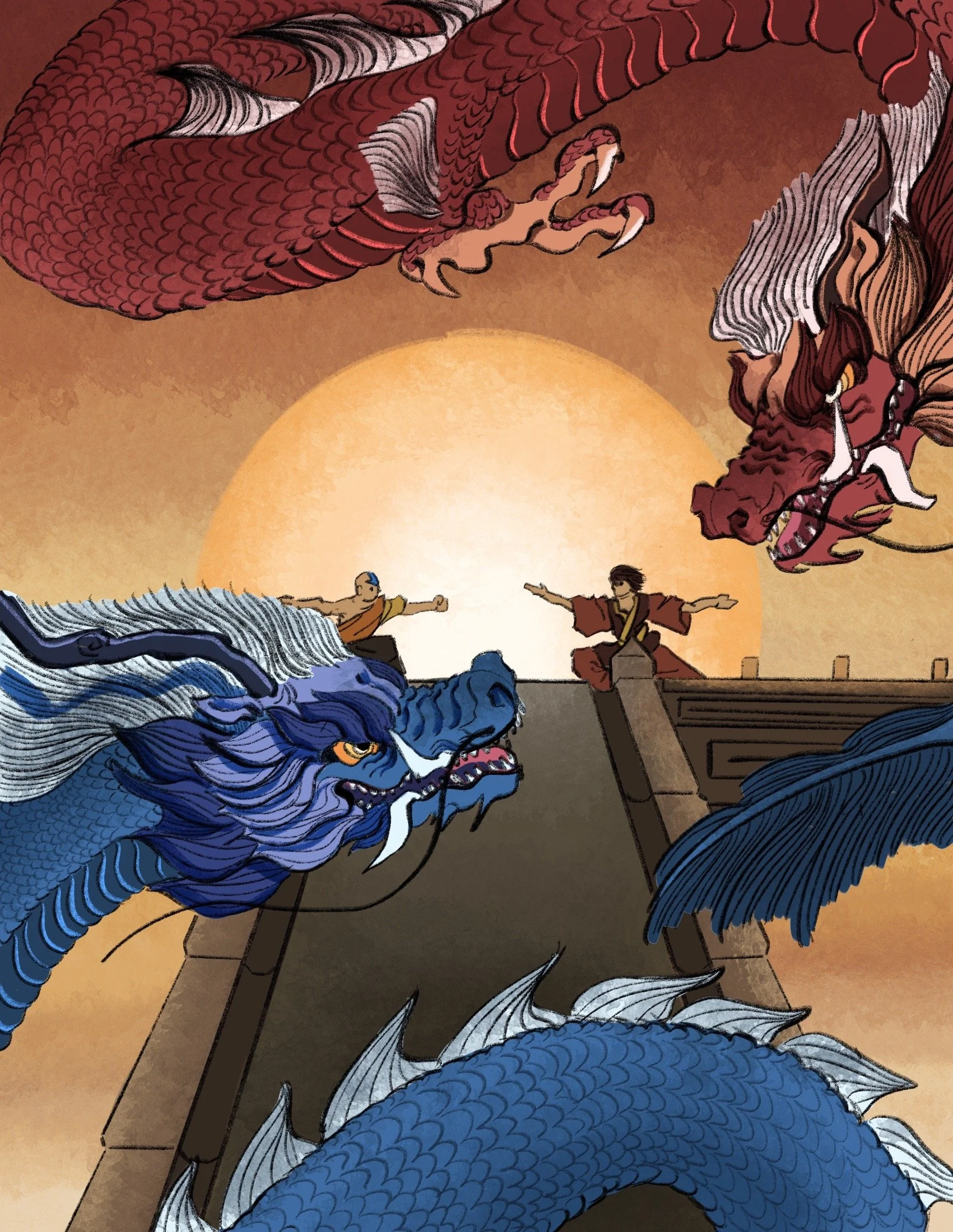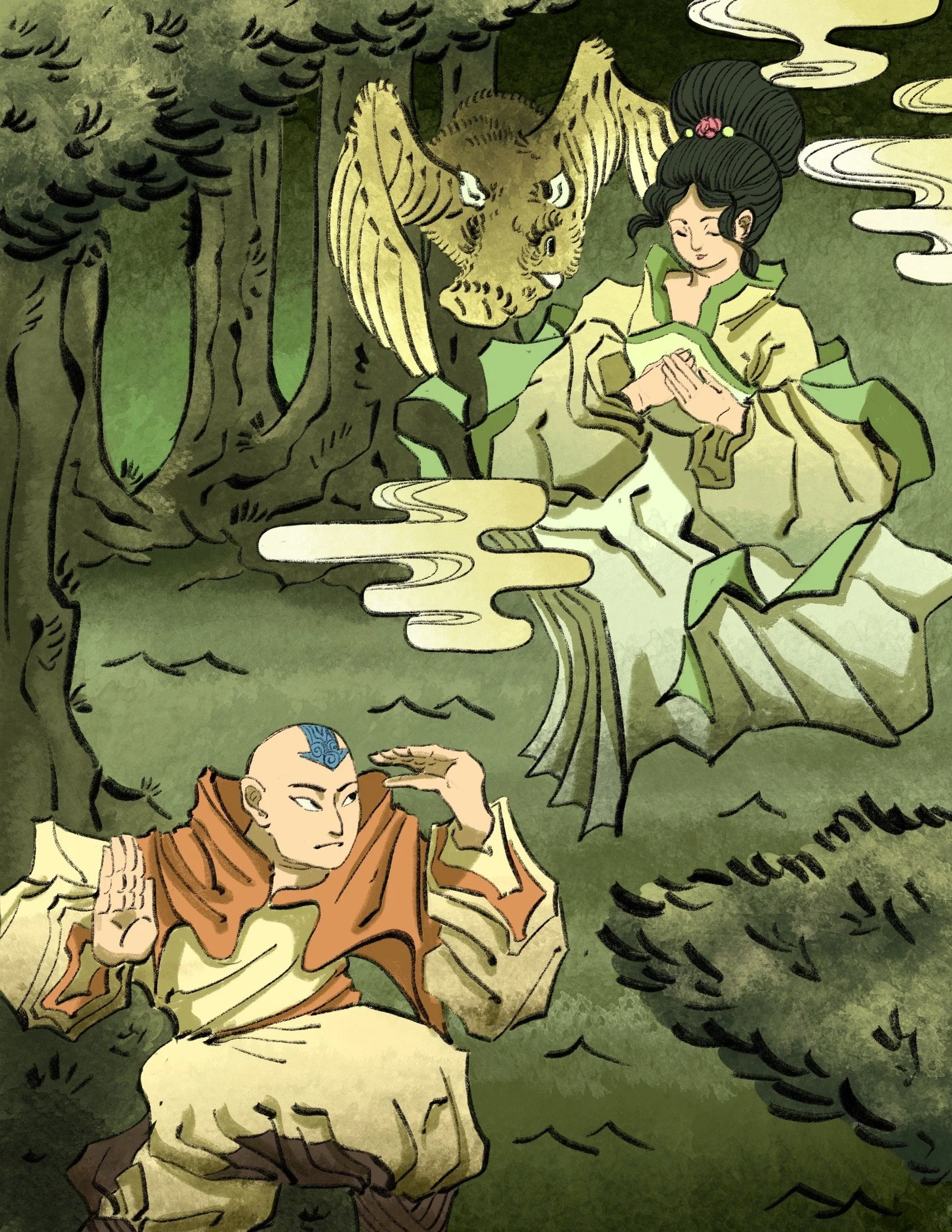 The Theme of this Sophomore project is about creating a series of illustrations based on an original story with a general art style that have taught in class. Since I was who grew up watching Avatar, it’s one of my favorite animated shows and probably one of many initial reasons for starting my art career. I thought of this immediately when planning the project and the ukiyo-e style fits the tone of the story.